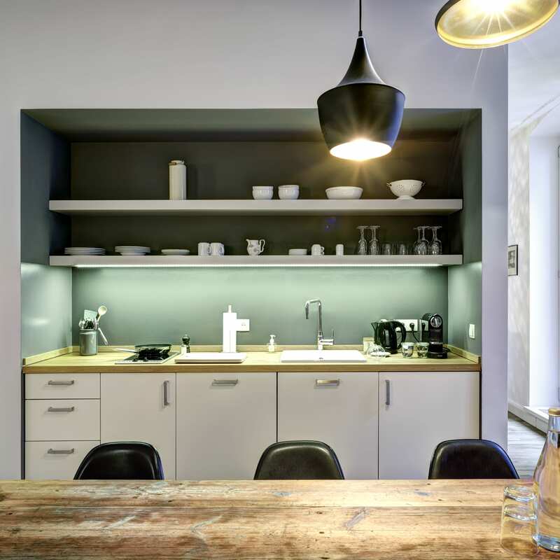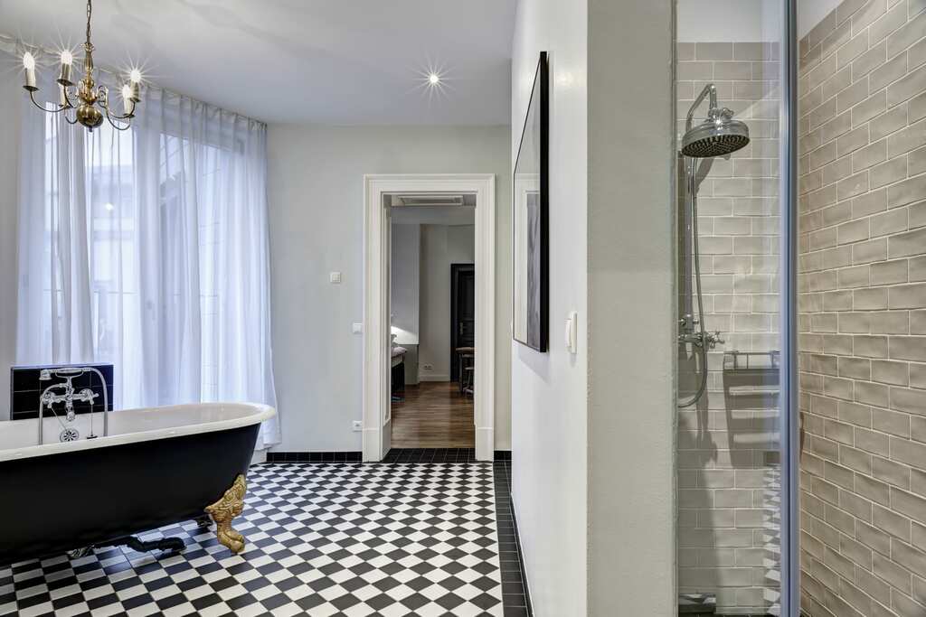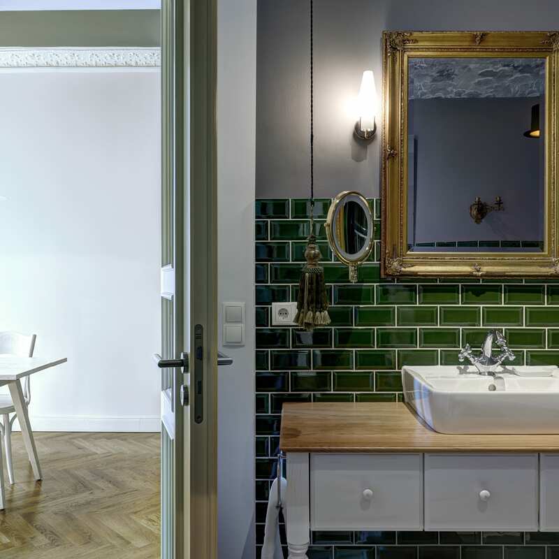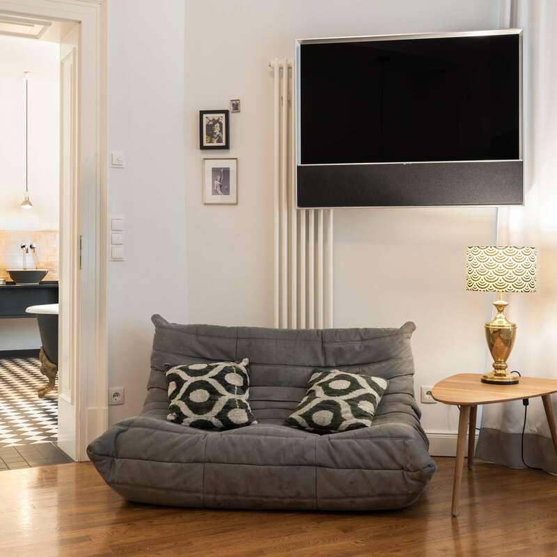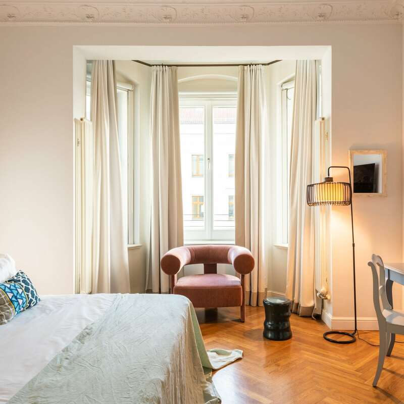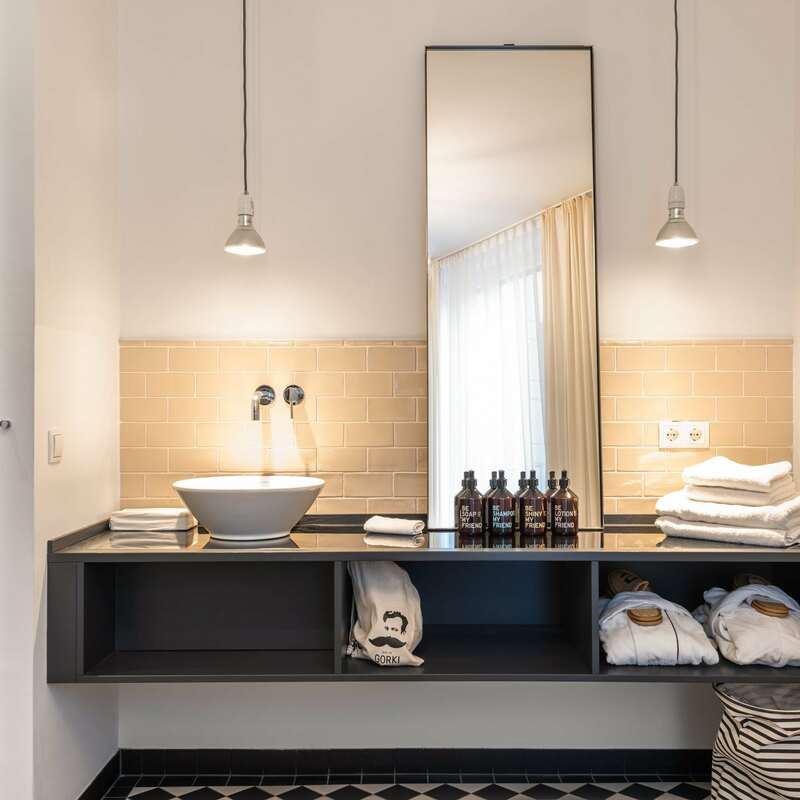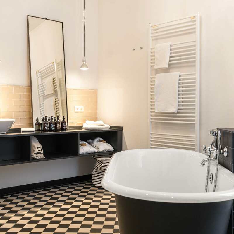 Kategorki 2 아파트는 각기 다른 세 가지 스타일로 디자인되어 있어 다양한 취향을 만족시킵니다. 모든 아파트는 본관에 위치해 있지만 방향에 따라 차이가 있습니다. Kategorki 2B 아파트는 거리 쪽을 향하고 있으며, 다른 스타일의 아파트에서는 조용한 안뜰의 고요한 전망을 즐길 수 있습니다. Kategorki 2A 아파트는 우아한 황금 다리가 달린 독립형 욕조로 눈에 띕니다. Kategorki 2B는 스타일리시한 초록색 타일 욕실과 매력적인 Weinbergsweg를 내려다보는 발코니로 특히 인기가 많습니다. Kategorki 2C 아파트 두 곳은 독특한 구조를 자랑합니다. 침실과 욕실이 식사 공간과 분리되어 있으며, 욕조는 없지만 울창한 안뜰 전망이 편안한 분위기를 연출합니다.